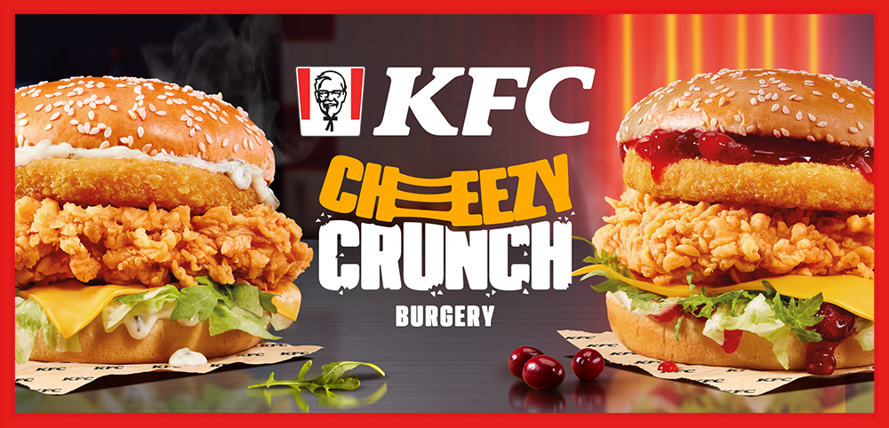 Cheezy Crunch Burgery z aksamitnym, gorącym serem i dwoma sosami do wyboru: żurawinowym lub tatarskim.