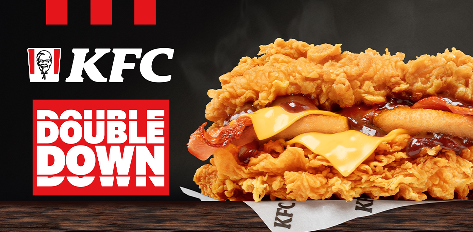 Dwa razy mocniej? Dwa razy więcej tego, co kochasz. Double Down. Starcie najmocniejszych zawodników. Dla naprawdę odważnych i naprawdę głodnych 🍗 🍗 🧀 🥓