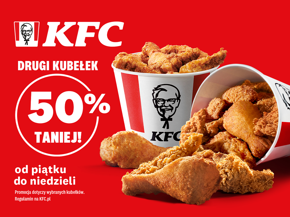 Teraz od piątku do niedzieli w KFC drugi kubełek 50% taniej!