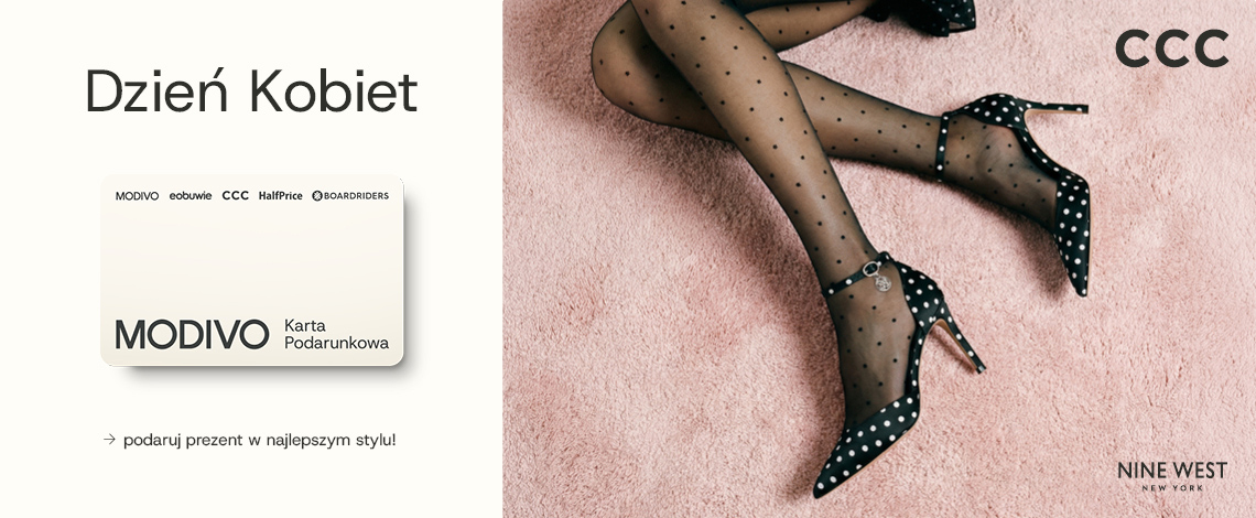 Umówmy się – wybór idealnego prezentu to nie lada wyzwanie! Trafienie w 'ten konkretny’ odcień błękitu czy wymarzony fason butów bywa trudne. Dlatego mamy dla Ciebie rozwiązanie idealne na Dzień Kobiet: Kartę Podarunkową MODIVO! Ona wybiera swój wymarzony model, a Ty zbierasz laury za najlepszy prezent pod słońcem. Kartę Podarunkową MODIVO znajdziesz przy kasie. Wyjątkowy prezent dla wyjątkowej kobiety!