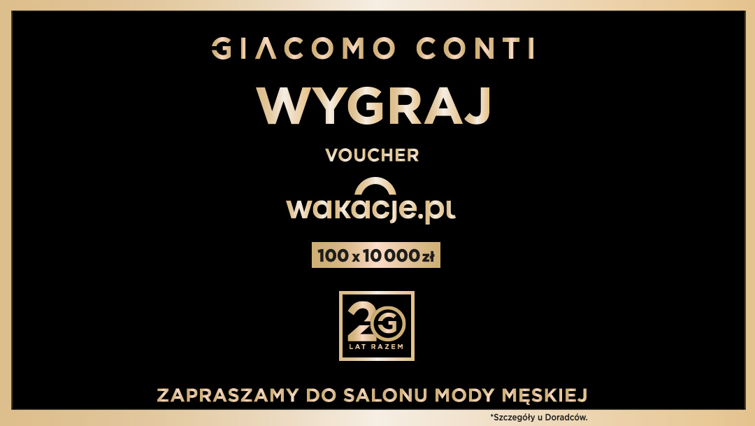 Giacomo Conti świętuje 20-lecie i zaprasza klientów do udziału w wyjątkowym konkursie z pulą nagród o łącznej wartości 1 000 000 zł.