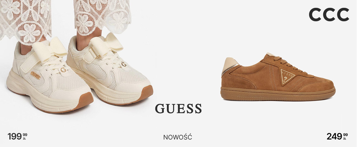Ikoniczny styl, który rozpoznasz od razu? Marka GUESS jest już w CCC, a to oznacza jeszcze więcej modowych możliwości! Odkryj kolekcję butów, która łączy ponadczasową elegancję z codzienną wygodą! Wyjątkowe fasony czekają na Twój wybór! To idealny moment, by odkryć wiosenny styl na nowo z marką GUESS w CCC!