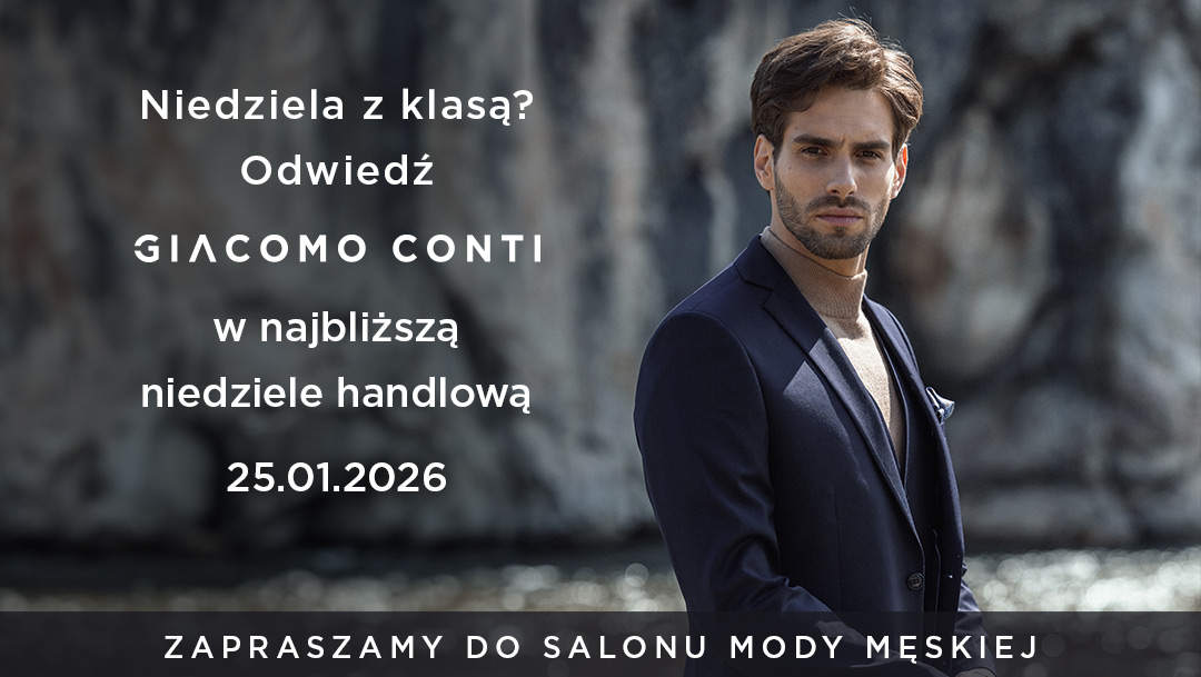 Zapraszamy w najbliższą niedziele handlową do salonu mody męskiej Giacomo Conti.