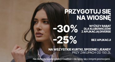 * Obowiązuje na produkty w cenie regularnej i przecenione. Nie dotyczy nowej kolekcji Coalition i nie łączy się z innymi promocjami.