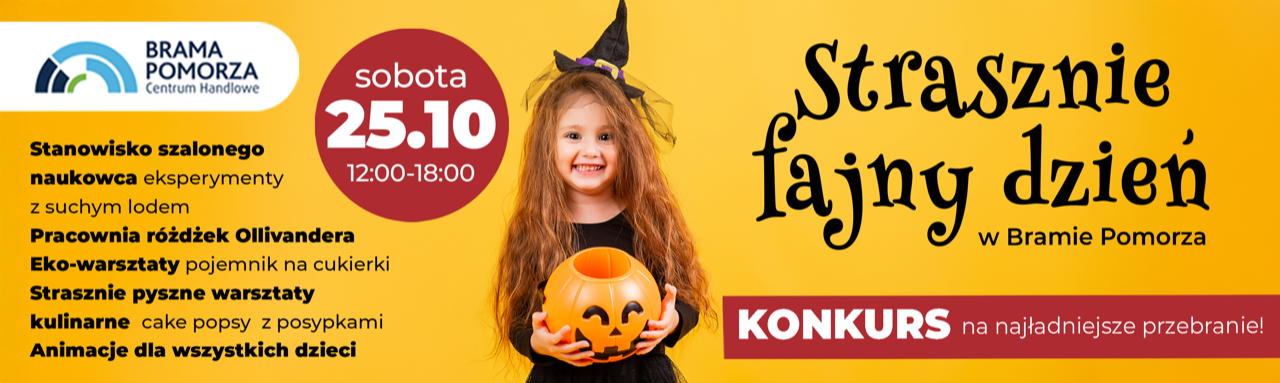 Już w najbliższą sobotę, 25 października, zapraszamy dzieci, rodziców i wszystkich fanów dobrej zabawy na wyjątkowe wydarzenie: Strasznie fajny dzień w Bramie Pomorza!
