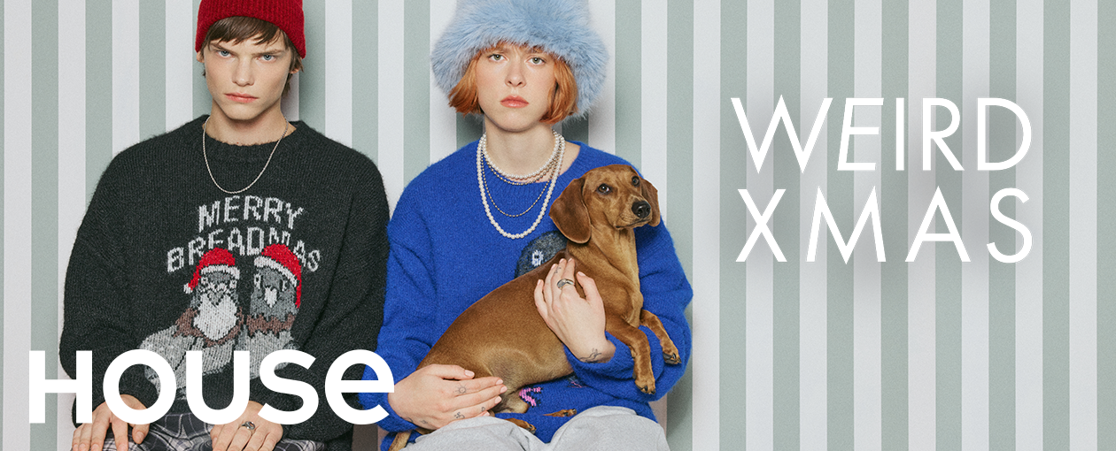 W te święta w House zmieniamy zasady: wszystko, co weird, jest po prostu cool! Zamień klasyczny świąteczny sweterek na taki z gołębiem, karpiem albo… pierogami. Wpadaj do salonów po nowości z kolekcji świątecznej i wyróżnij się przy świątecznym stole!