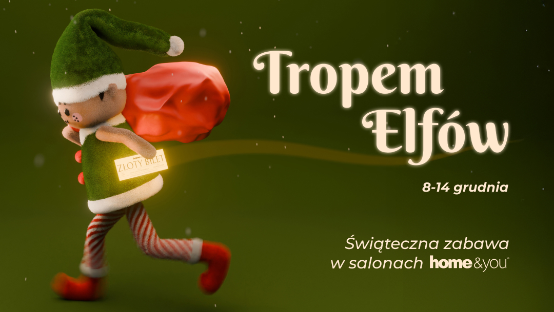 W home&you świętujemy z niespodziankami! Od 8 do 14 grudnia zapraszamy do udziału w zabawie ,,Tropem Elfów.” – w salonach home&you czekają ukryte pocztówki z rabatami i voucherami na zakupy. Każdy dzień to szansa na znalezienie jednej z 12 pocztówek, a wyjątkowi poszukiwacze mogą odkryć ZŁOTY BILET, który gwarantuje nagrodę specjalną. Niech świąteczne zakupy będą udane i pełne radości! Szczegóły akcji i regulamin dostępne są w salonach home&you i na home-you.com